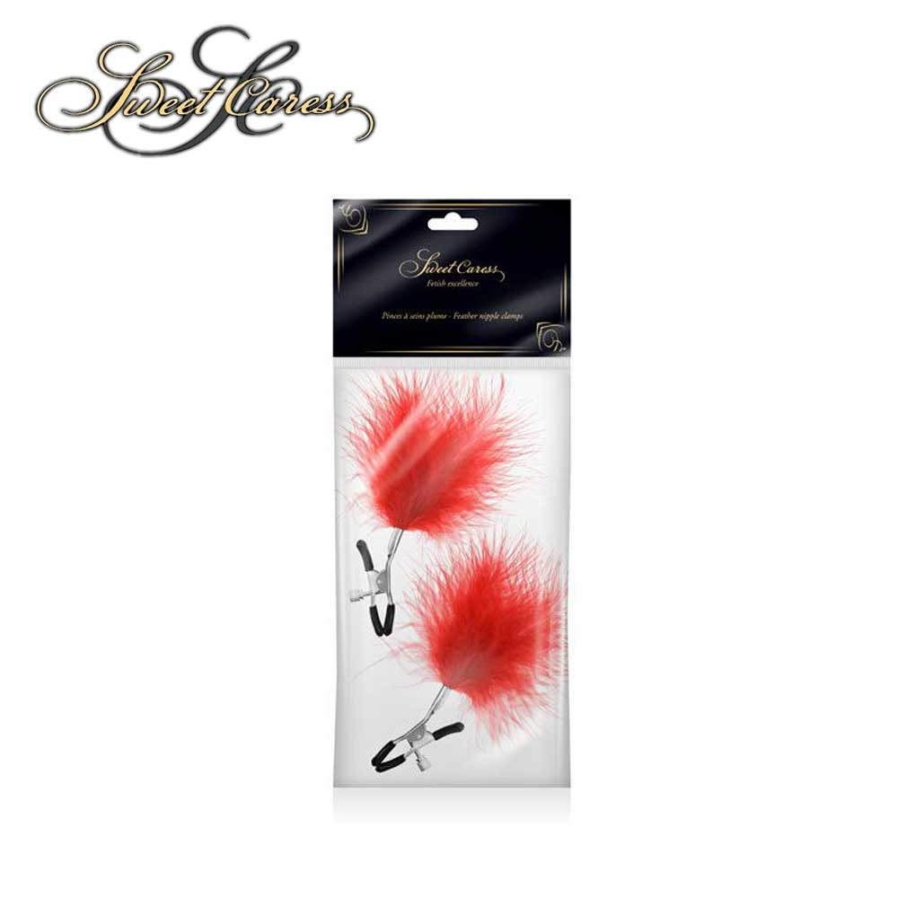 Use these beautiful nipple clamps with fluff in red color by Sweet Caress, to give you the submissive feeling you like and the pleasure of soft pain on your nipples.