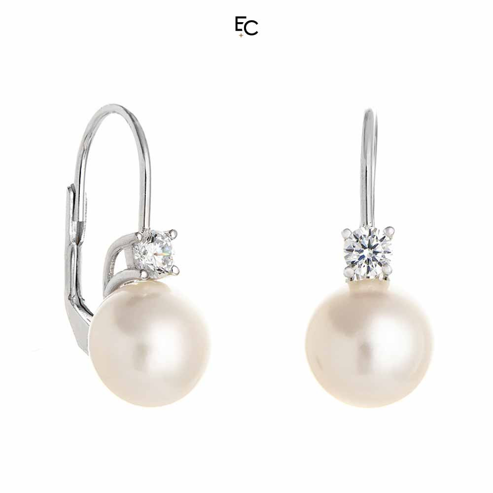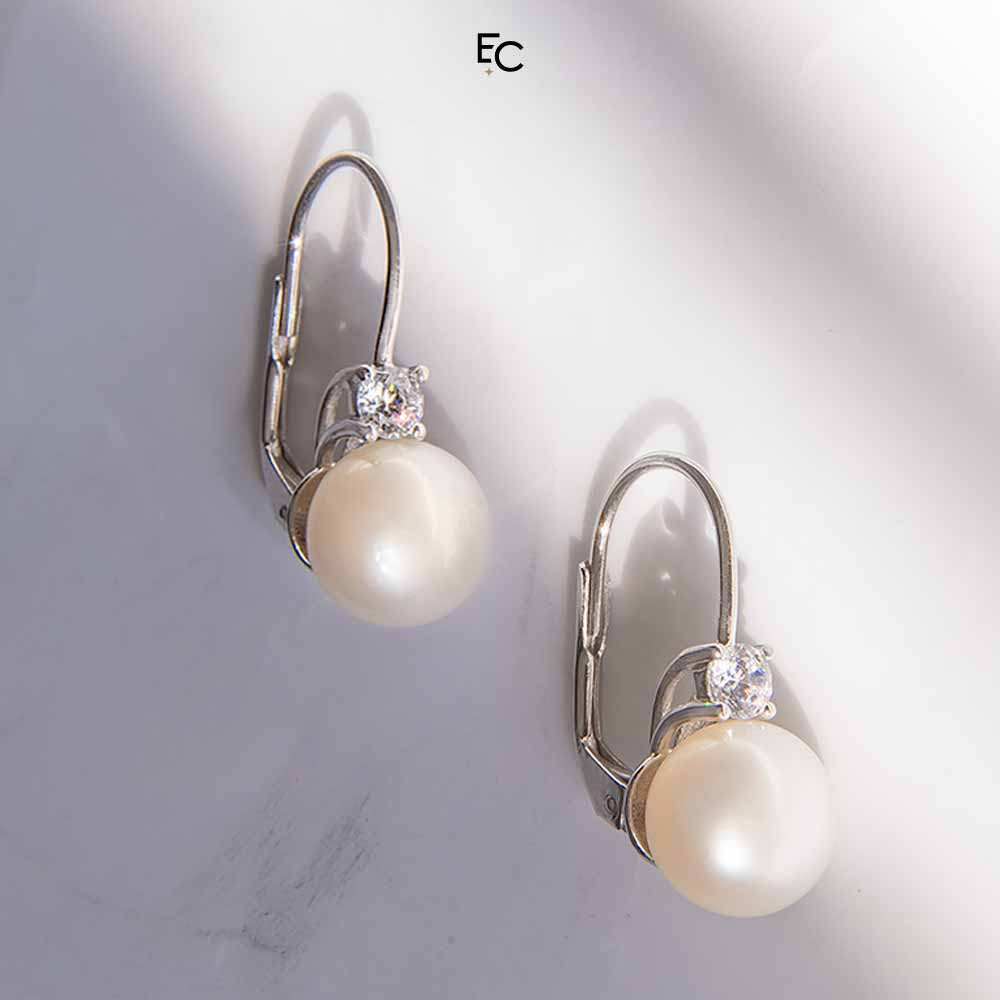 Cercei de Argint 925 cu design clasic, cu perle si pietre de zirconiu adaugate, pentru un aspect elegant in orice moment al zilei.